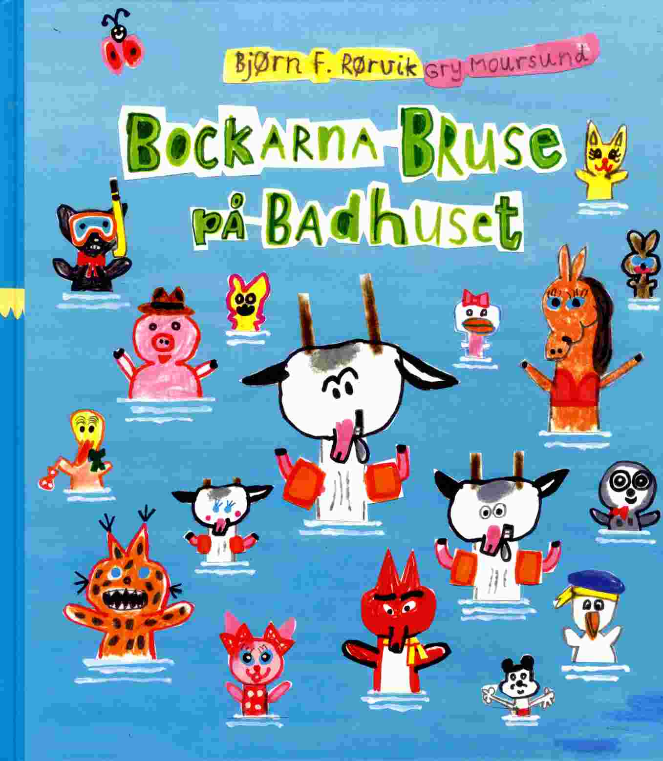 I Bockarna Bruse på badhuset får den välkända och älskade sagan nytt liv igen i en rolig, tokig och spännande berättelse som både vuxna och barn kan njuta av. Gry Moursund, som räknas till en av Nordens mest nyskapande illustratörer, står bakom de fantastiska bilderna. Hennes lustfyllda, galna och humoristiska illustrationer älskas av såväl barn som vuxna. I mötet mellan Bjørn F. Rørviks text och Gry Moursunds illustrationer uppstår stor bilderbokskonst!