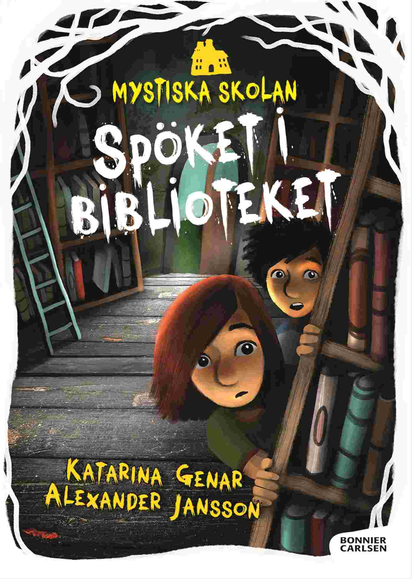 Spöket i biblioteket är den första, fristående och längre kapitelboken i Katarina Genars rysmysiga serie ”Mystiska skolan”. Spännande och lagom läskiga berättelser för nybörjarläsare. Böckerna om ”Mystiska skolan” går att läsa i vilken ordning du vill och finns i olika svårighetsgrad. Alexander Jansson har gjort de magiska illustrationerna som här är i svartvitt.Greta älskar sin skola. Ibland händer det mystiska saker här och det finns sådant som inte alltid syns …I dag är deras bibliotekarie, Amir, jättearg. Någon har använt stegen i biblioteket och tagit ner en värdefull svart bok och sedan lämnat den uppslagen i soffan. Det är absolut förbjudet!Nästa morgon när Greta och Malte träffas på skolgården ser de hur en lampa tänds i biblioteket och en mörk skugga skymtar bakom gardinen. Vem kan det vara? Och kan det ha något med den värdefulla gamla svarta boken att göra?I ”Lätt att läsa” finns det sedan tidigare fler böcker om ”Mystiska skolan”: Svarta madam, Anden i glaset, Spökhunden och Pianot på vinden. Dessa böcker är lite enklare, mer lättlästa och har bilder i färg. Alla böcker om ”Mystiska skolan” kan läsas helt fristående.